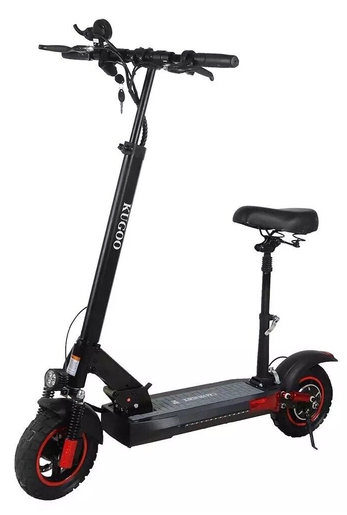 Kugoo M4pro upgraded model of M4 the best-selling escooter in Ireland. The scooter became more dynamic, deck and steering rack were enhanced. Thanks, Bigger battery 18Ah you can reach long range - over 60km and a powerful motor gives you a full fan of the ride and let you reach 50km/h. With a set of 6lights, you will be clearly visible in the dark. Front, backstop light 2 side ambient light, and turn signals. Pneumatic 10-inch Anti-skid pattern, high-strength offroad tires are giving better shock absorption. IPX4 grade enhanced waterproof. That’s perfect for everyday transportation.